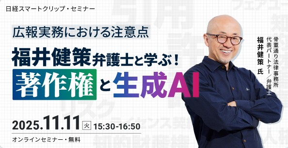15:30~16:30 第1部 広報実務における注意点 福井健策弁護士と学ぶ著作権と生成AI